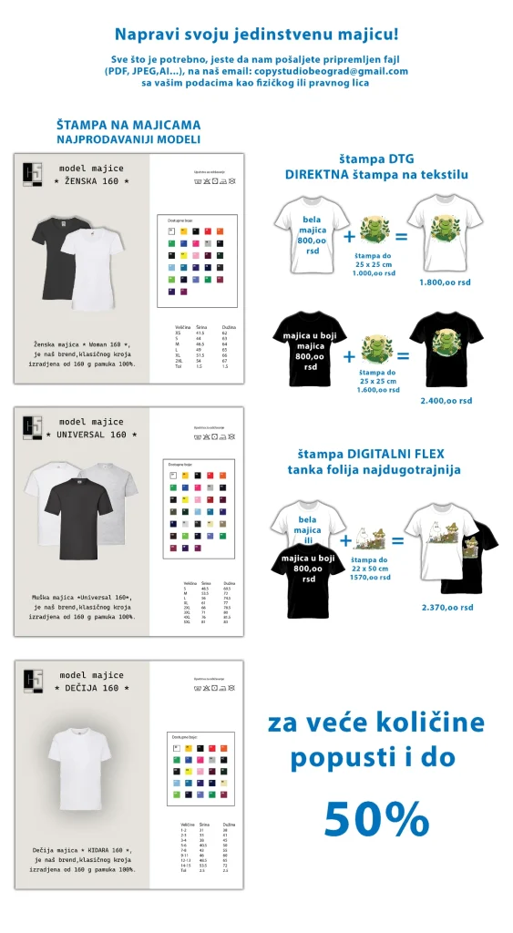 Na osnovu iznetog opisa nadamo se da smo Vam pomogli da se odlučite za način štampe na tekstilu koji bi Vama bio najpodesniji!